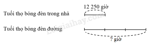 Bóng đèn trong nhà có tuổi thọ 12 250 giờ. Bóng đèn đường có tuổi thọ gấp 3 lần tuổi thọ của bóng đèn trong nhà. Hỏi tuổi thọ của bóng đèn đường là bao nhiêu giờ?
