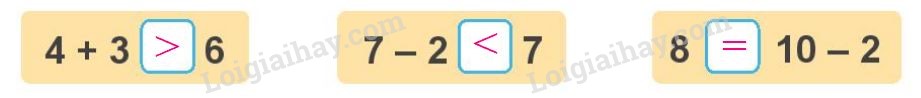 Tính kết quả của hai vế rồi điền dấu thích hợp để được phép tính đúng.