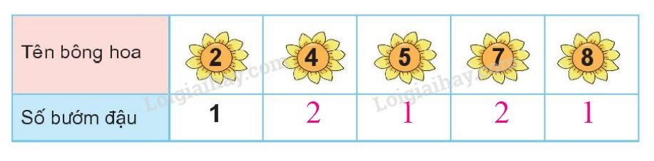 a) Bông hoa ghi số 6, 7, 8.