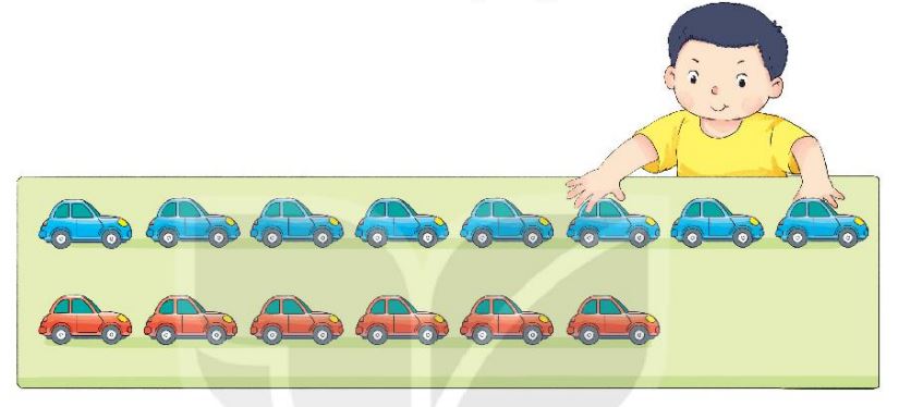 Lúc đầu Việt xếp các ô tô thành hai hàng (như hình vẽ). Sau đó, Việt chuyển một ô tô từ hàng trên xuống hàng dưới. Khi đó, câu nào dưới đây là đúng?