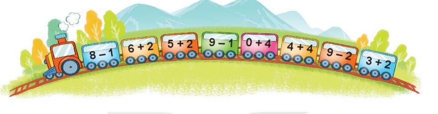 5 + 2 = 7                                 9 – 1 = 8