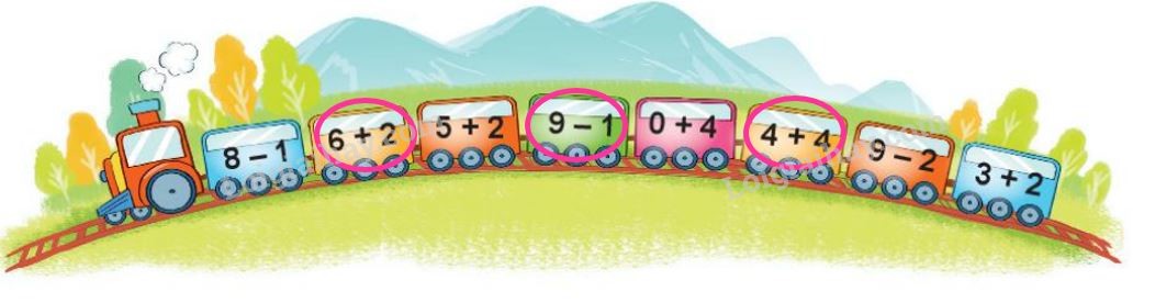 Thực hiện từng phép tính để chỉ ra những phép tính có kết quả bằng 8.