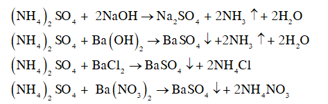 – Phản ứng giữa (NH4)2SO4 với dung dịch NaOH, dung dịch Ba(OH)2, dung dịch BaCl2, dung dịch Ba(NO3)2 thuộc phản ứng trao đổi
