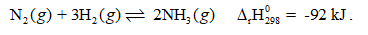 + Phản ứng thuận là phản ứng tỏa nhiệt, theo nguyên lí chuyển dịch cân bằng Le Chatelier, để phản ứng chuyển dịch theo chiều thuận, ta cần giảm nhiệt. Tuy nhiên, khi thực hiện phản ứng ở nhiệt độ quá thấp thì tốc độ của phản ứng nhỏ, phản ứng diễn ra chậm. Do đó người ta chọn nhiệt độ khoảng 380 °C – 450 °C.