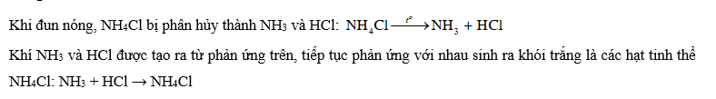 Đun nóng NH4Cl (Hình 4.6) thấy có hiện tượng khói trắng trong ống nghiệm. Giải thích.