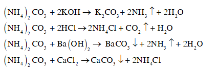 – Phản ứng giữa (NH4)2CO3 và các dung dịch KOH, HCl, Ba(OH)2, CaCl2 thuộc phản ứng trao đổi