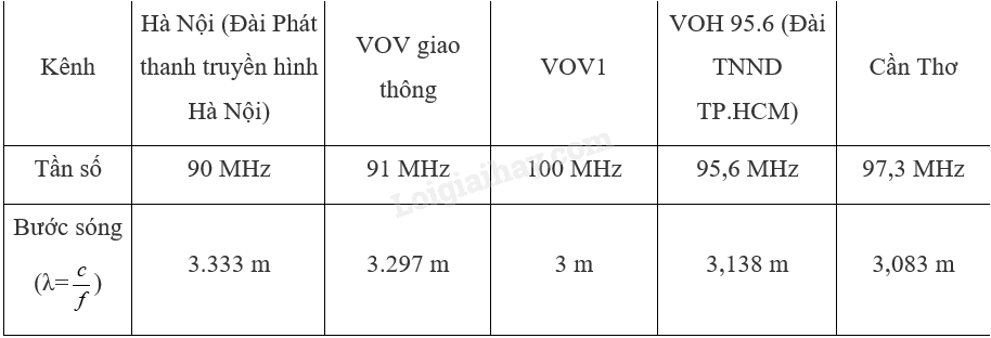 – Từ tần số của các kênh phát thanh và truyền hình đã liệt kê ở trên, em hãy tính bước sóng tương ứng của chúng.