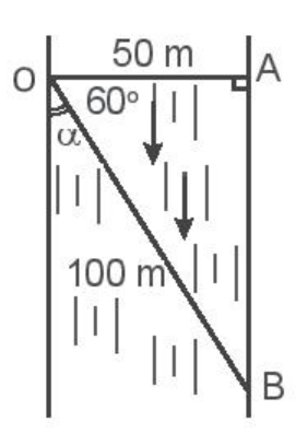 AB = \(\sqrt {O{B^2} – O{A^2}} \)= \(\sqrt {{{100}^2} – {{50}^2}} \)≈ 86,6 m.