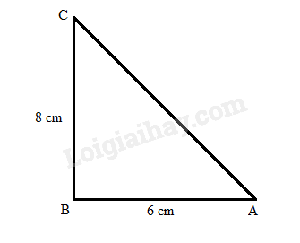 \(\begin{array}{l}A{B^2} + B{C^2} = A{C^2}\\ \Rightarrow AC = \sqrt {A{B^2} + B{C^2}}  = \sqrt {{6^2} + {8^2}}  = 10(cm)\end{array}\)