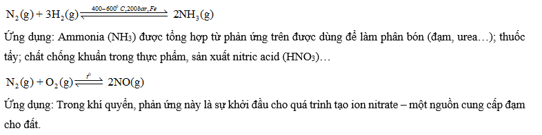 Viết phương trình hoá học của phản ứng giữa nitrogen với hydrogen và với oxygen. Nếu ứng dụng của mỗi phản ứng này trong thực tế.