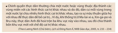 Khai thác tư liệu (tr. 21) giúp em biết điều gì về chính sách cai trị của chính quyền thực dân ở một số nước Đông Nam Á.