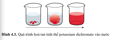 Thả một vài tinh thể patassium dichromate K2Cr2O7 màu cam đỏ vào nước (Hình 4.3). Entropy của quá trình hòa tan này tăng hay giảm? Giải thích.