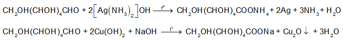 – Sau đó, glucose phản ứng với thuốc thử Tollens và Cu(OH)2 (trong môi trường kiềm, đun nóng):