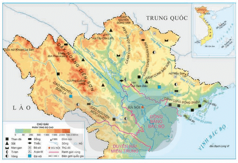 – Một số loại khoáng sản chính ở vùng Trung du và miền núi Bắc Bộ là: than đá; sắt; man-gan; Ti-tan; Vàng; đồng; thiếc; A-pa-tít; Đá vôi,…
