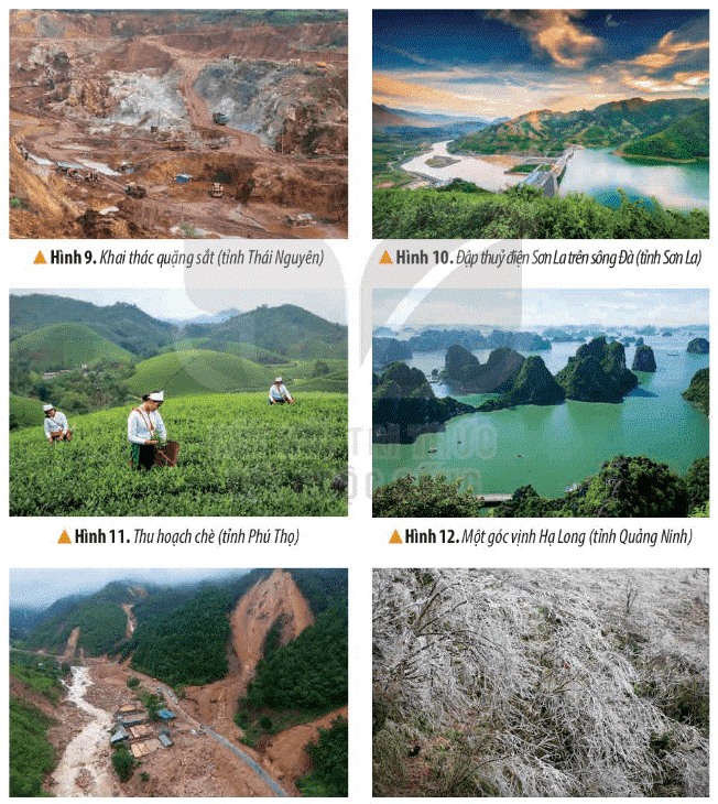 Đọc thông tin và quan sát các hình từ 9 đến 14, em hãy cho biết điều kiện tự nhiên có ảnh hưởng như thế nào đối với đời sống và sản xuất ở vùng Trung du và miền núi Bắc Bộ.