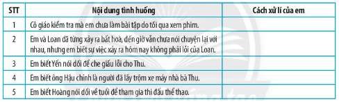 Học sinh hãy đưa ra cách xử lí của mình qua các tình huống trên.