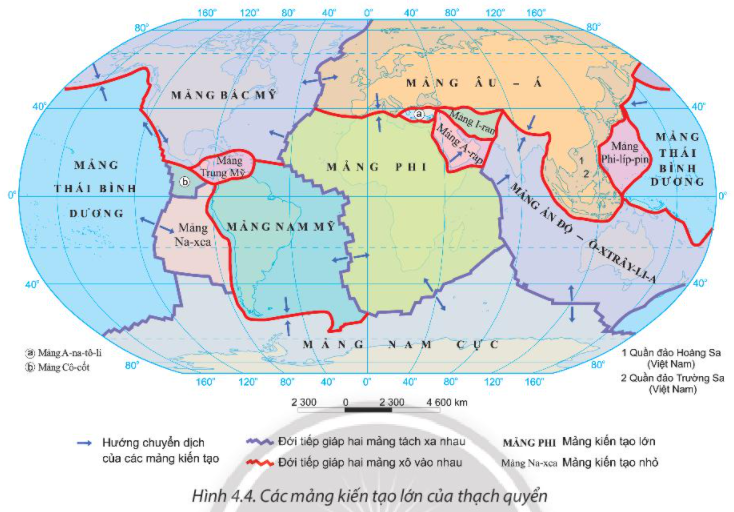Quan sát hình 4.4 và đọc thông tin trong mục 1 (Nội dung thuyết kiến tạo mảng).