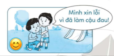 Em sẽ: Nếu làm rơi mũ của bạn vào vũng nước, em sẽ nhặt mũ lên, xin lỗi bạn chân thành và làm sạch mũ trước khi trả lại cho bạn. (Mình xin lỗi bạn nhé! Để mình mang mũ về làm sạch rồi mình trả lại cho bạn nhé!).