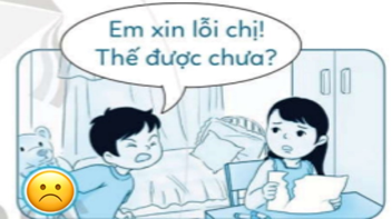 Người em trai sau khi làm rách giấy của chị đã hét vào mặt của người chị và nói thêm: “Thế được chưa”. Dường như người em không mong muốn sửa chữa lỗi lầm đó. Đây là cách xin lỗi thiếu chân thành, bất lịch sự, xin lỗi cho có.