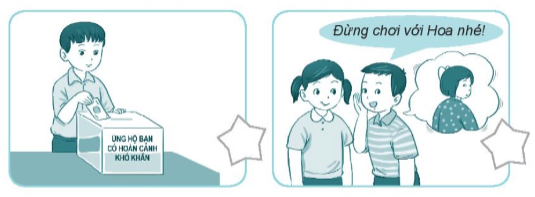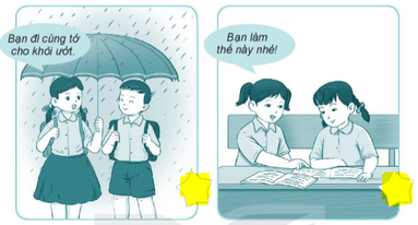 Hình 3: Em sẽ đến hỏi thăm, an ủi, nói chuyện, động viên tinh thần bạn để Kiên cảm thấy bớt buồn và vui vẻ hơn.