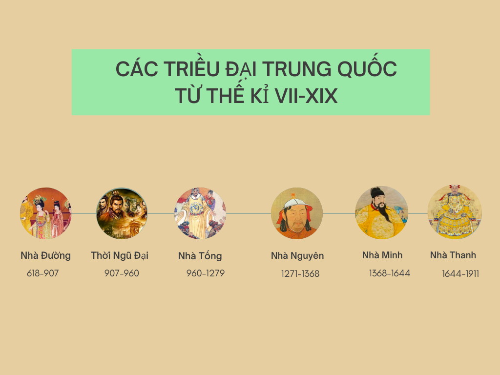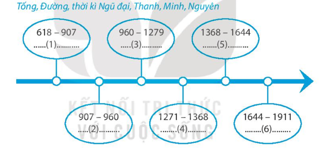=> Chọn: 1- Đường; 2-thời kì Ngũ đại; 3-Tống; 4-Nguyên; 5-Minh; 6-Thanh