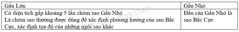 1. Mô tả sự khác biệt giữa hai chòm sao Gấu Lớn và Gấu Nhỏ