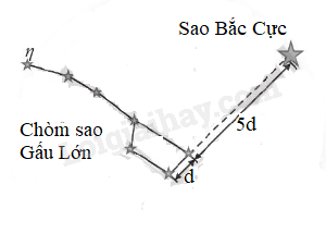 Sau một trận bão, toàn bộ thiết bị định vị và liên lạc trên một chiếc tàu thám hiểm bị hư hỏng, tàu bị mất phương hướng trên biển. Thủy thủ đoàn quan sát bầu trời đêm và vẽ được chòm sao Gấu Lớn như Hình 4.7. Em hãy giúp họ xác định phương hướng bằng cách chỉ ra vị trí của sao Bắc Cực.
