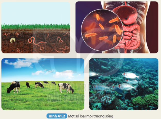 Em hãy xác định các loại môi trường sống được thể hiện trong hình 41.2.