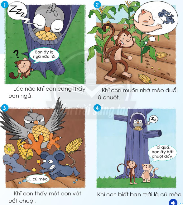 – Tranh 4: Khỉ con biết bạn mới là cú mèo.