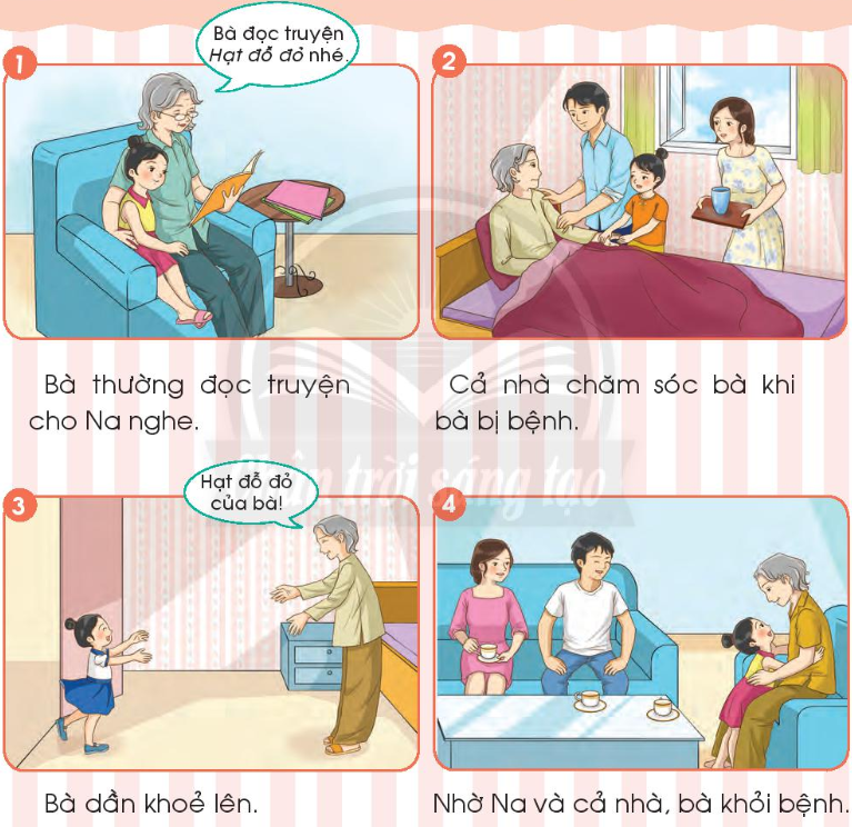 Từ ngày bà bệnh, hễ đi học về, Na lại vào phòng bà, kể chuyện cho bà nghe. Cả nhà cùng nhau chăm sóc bà và mong bà mau khỏe lại.