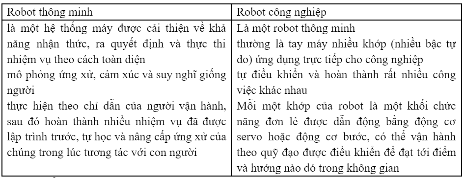 Theo em, robot công nghiệp và robot thông minh khác nhau ở chỗ nào?