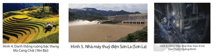 Quan sát các hình 4, 5, 6 và đọc thông tin, em hãy kể tên một số cách thức khai thác tự nhiên ở vùng Trung du và miền núi Bắc Bộ.