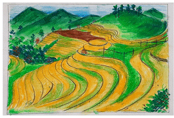 Vẽ một bức tranh về ruộng bậc thang.