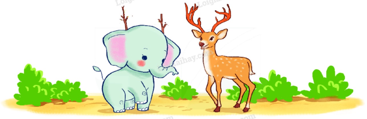 – Sau khi nghe hươu nói, voi em nhặt vài cành cây khô, gài lên đầu rồi đi tiếp.