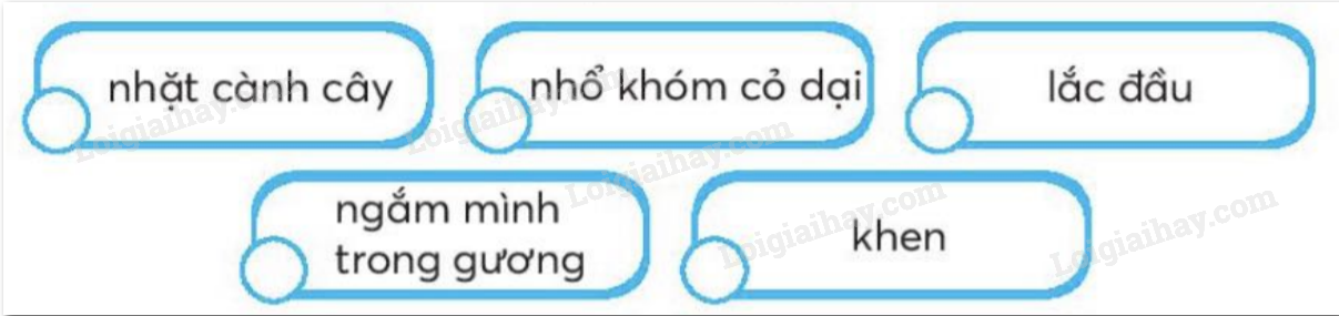 Những từ ngữ nào dưới đây chỉ hành động của voi em? (đánh dấu vào ô trống dưới đáp án đúng).