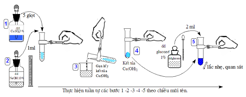 Thứ tự thực hiện thí nghiệm tráng bạc của glucozo là: