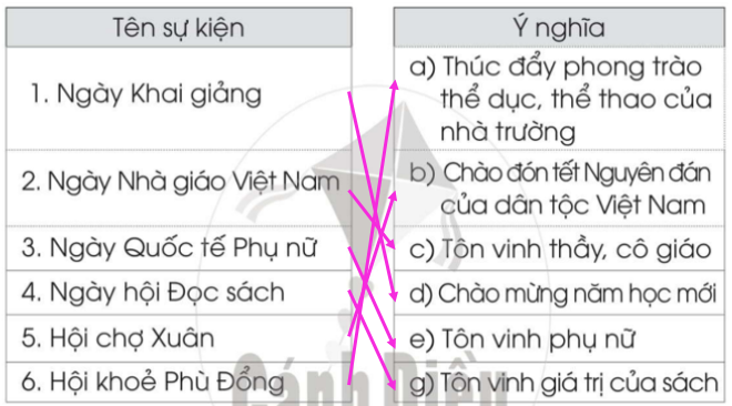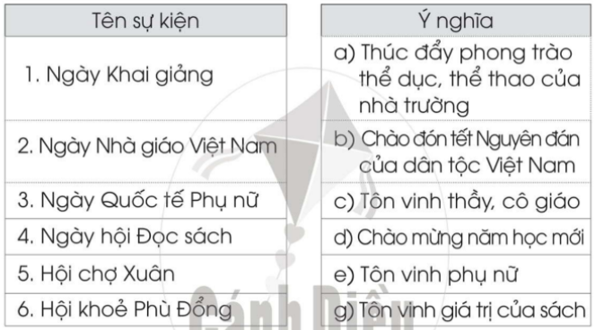 Nối tên sự kiện với ý nghĩa thích hợp.