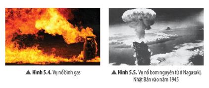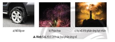 Quan sát Hình 5.6, cho biết hiện tượng nổ nào thuộc loại phản ứng nổ vật lí hoặc nổ hóa học.