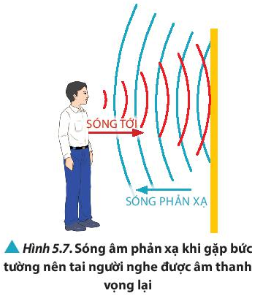Phương truyền của sóng âm là tới hướng vuông góc về phía mặt tường, khi gặp mặt tường sẽ phản xạ lại về hướng phát ra âm thanh.