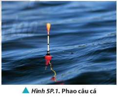 Xét sóng nước truyền qua vị trí của phao câu cá đang nổi trên mặt nước khi lặng gió như Hình 5.P.1. Phao có trôi đi theo phương truyền của sóng nước không? Vì sao?