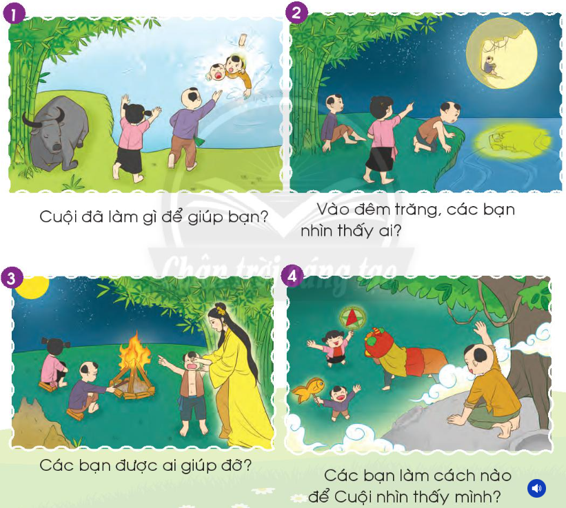 Em quan sát kĩ các tranh và trả lời các câu hỏi ở từng tranh để kể lại câu chuyện.