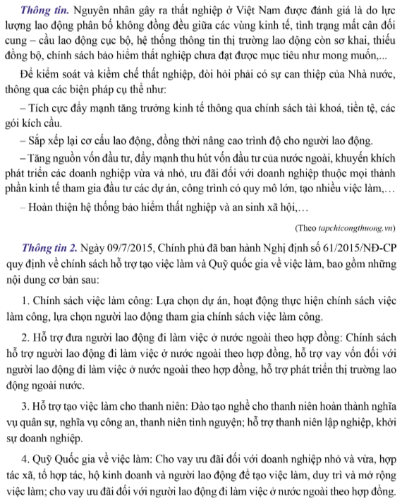 Đọc thông tin và kể tên các biện pháp Nhà nước đã thực hiện để kiểm soát và kiềm chế thất nghiệp được đề cập trong thông tin đó.