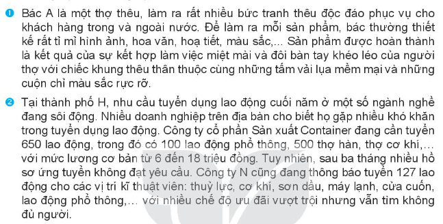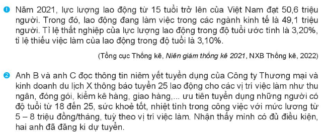 – Đọc các thông tin và nhận xét được về tình hình cung – cầu lao động trên thị trường ở Việt Nam năm 2021.