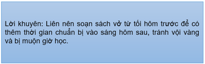 2. Sáng nào Liên cũng vội vàng vì phải làm rất nhiều việc từ soạn sách vở, vệ sinh cá nhâ, ăn sáng,… trước khi đi học.