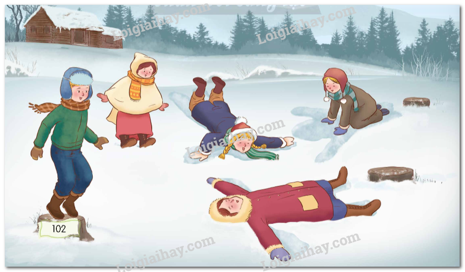 – Tớ chỉ cho tất cả chơi trò gì nhé. Chúng mình tạo hình trên tuyết đi.