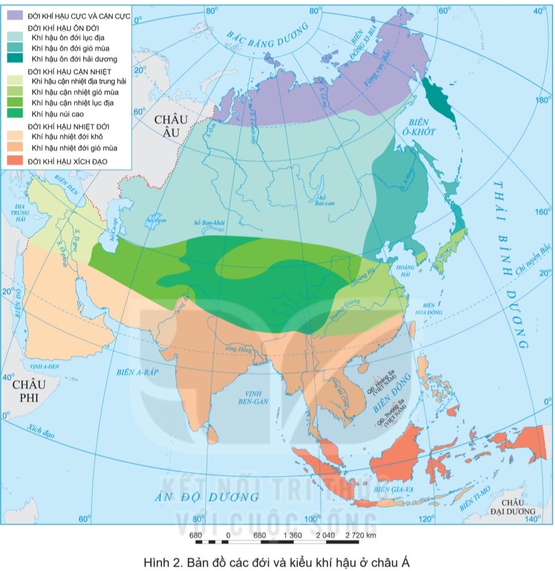 – Xác định phạm vi của các kiểu khí hậu gió mùa và các kiểu khí hậu lục địa.