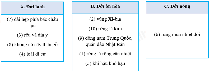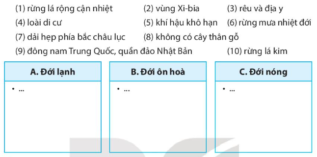Sắp xếp các cụm từ sau vào ba ô sao cho phù hợp.