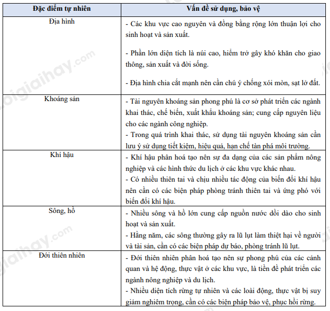 Cho biết ý nghĩa của các đặc điểm tự nhiên đối với việc sử dụng và bảo vệ tự nhiên ở châu Á. Gợi ý:
