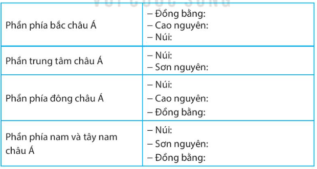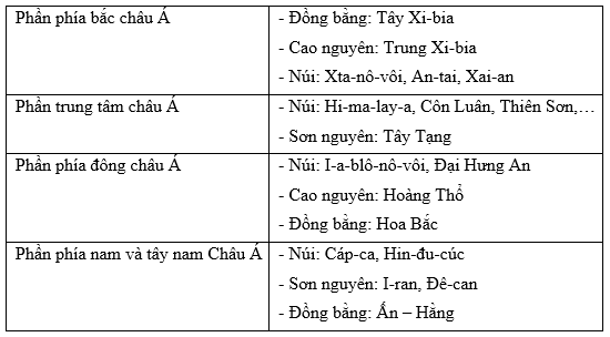 Em hãy vận dụng kiến thức đã học về đặc điểm tự nhiên của châu Á để làm bài
