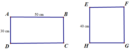 Cho hình vuông và hình chữ nhật có các kích thước như sau: